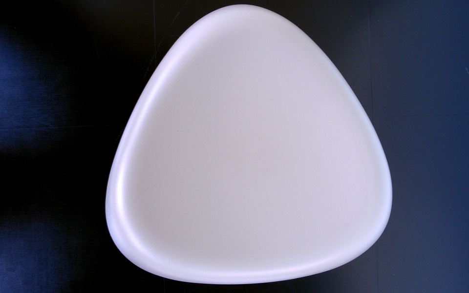 デザイン誕生50周年を記念して、ヴィトラデザインミュージアムより再々復刻された柳宗里デザインエレファントスツール。その名の通り像の脚をモチーフとした、かわいらしい三本脚のスツールです。1956年発売当初の素材はFRPでしたが、現在はポリプロピレンへと変更されています。FRPの光沢感とポリプロピレンのマット感という素材の差異はありますが、オリジナルにこだわらなければ、そんなことはたいした問題ではないように思います。個人的には、冷たさや堅さが感じられないポリプロピレンのもののほうが、しっとりとして優しい表情をもっていて好きです。