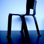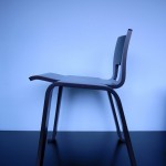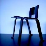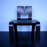 厚さ17mmの一枚の成形合板に切り込みを入れ、折り曲げられてできる小椅子。